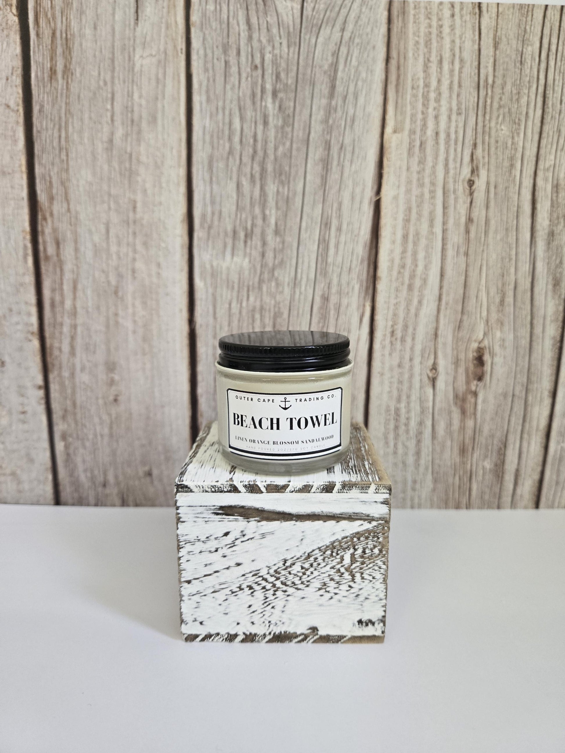 Beach Towel Scented Soy Wax Candle: Lemon, Sandalwood, Linen